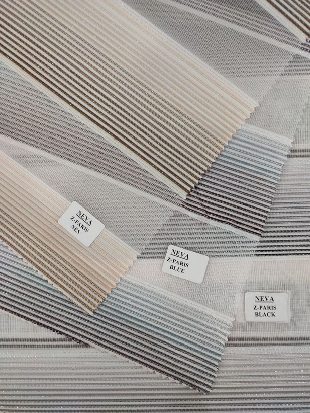 نمونه عکس هایی که در تصویر بالا مشاهده می کنید نمونه زبرا مدل PARIS می باشد که از یک لایه پارچه و یک لایه تور تشکیل شده