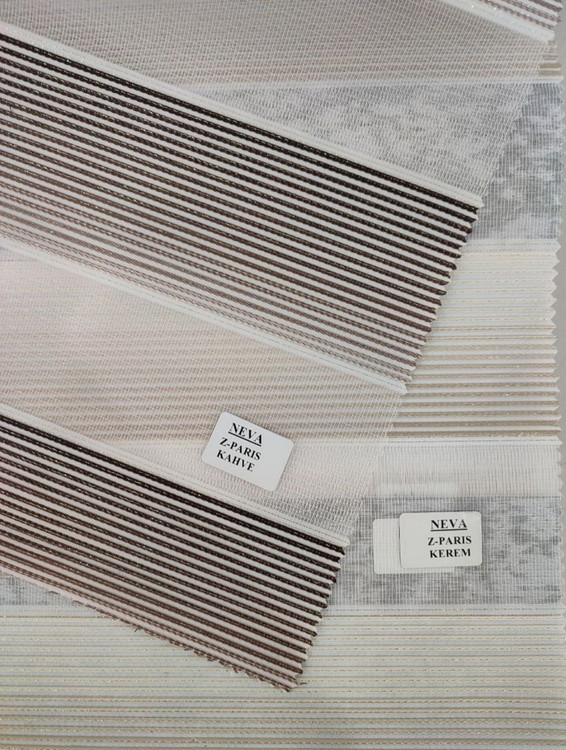 نمونه عکس هایی که در تصویر بالا مشاهده می کنید نمونه زبرا مدل PARIS می باشد که از یک لایه پارچه و یک لایه تور تشکیل شده