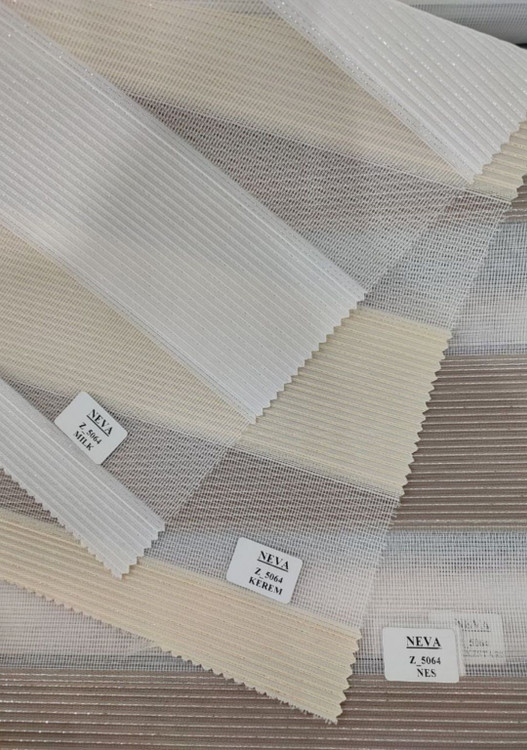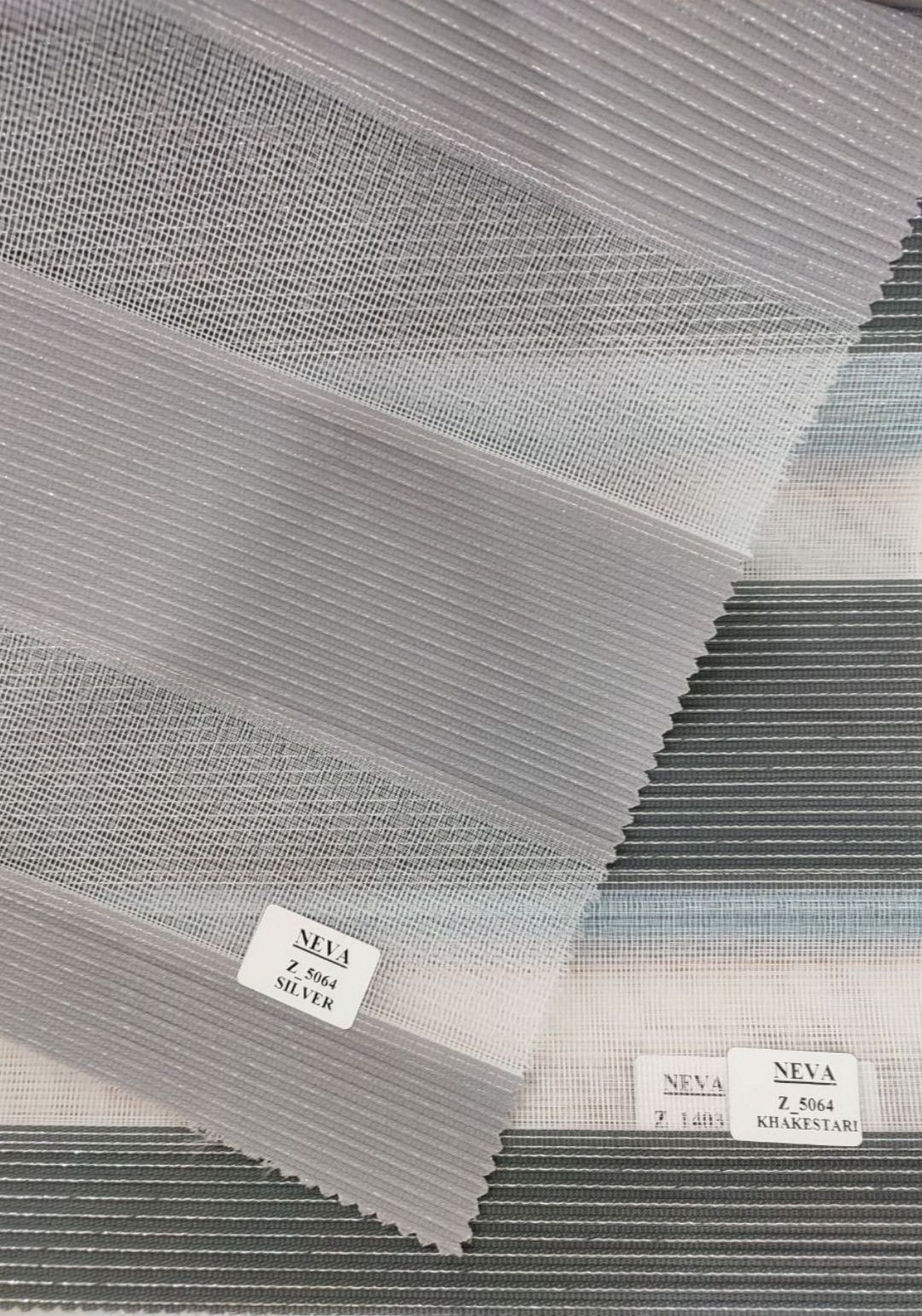نمونه عکس هایی که در تصویر بالا مشاهده می کنید نمونه زبرا مدل TOKA می باشد که از یک لایه پارچه و یک لایه تور تشکیل شده